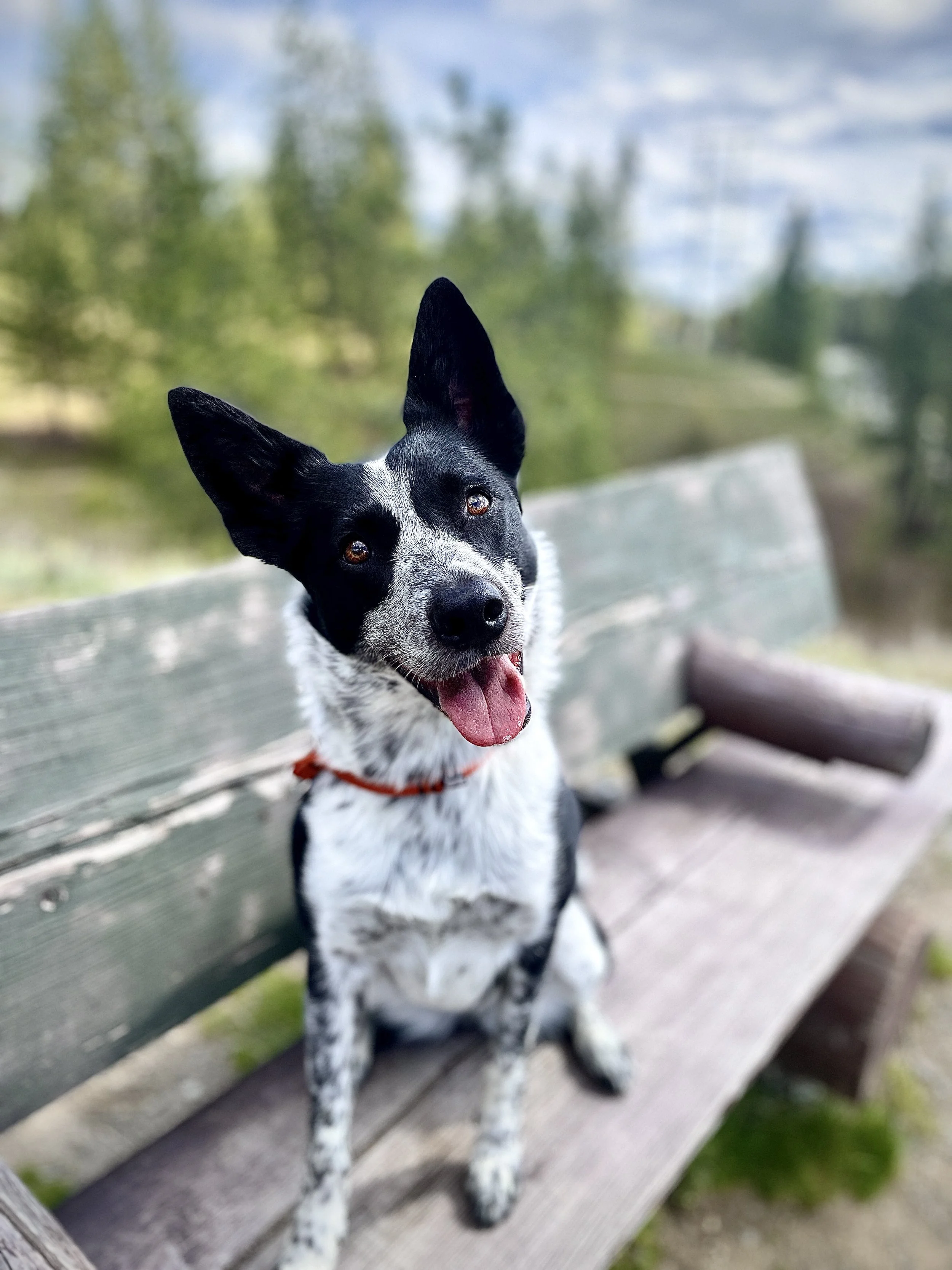 Olive posing on a bench at a scenic overlook at Wyakin.
